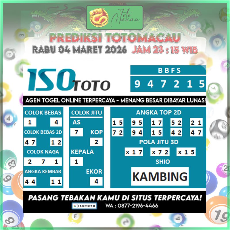 Prediksi Isototo Totomacau Akurat Bisa JP Hari Ini