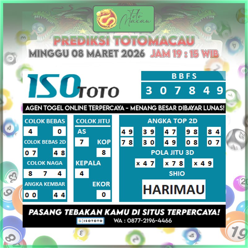 Prediksi Totomacau Hari Ini | Bocoran Macau 08 Maret 2026