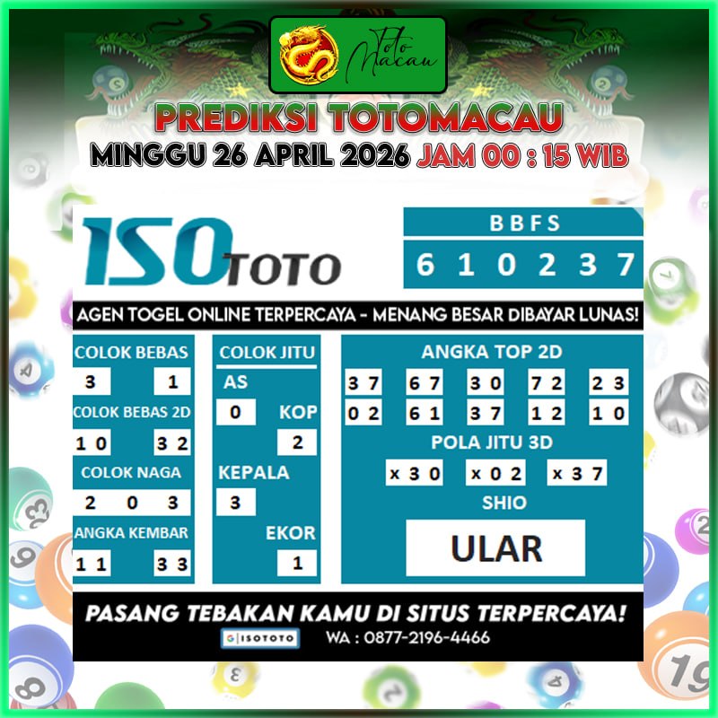 Prediksi Isototo Totomacau Akurat Bisa JP Hari Ini