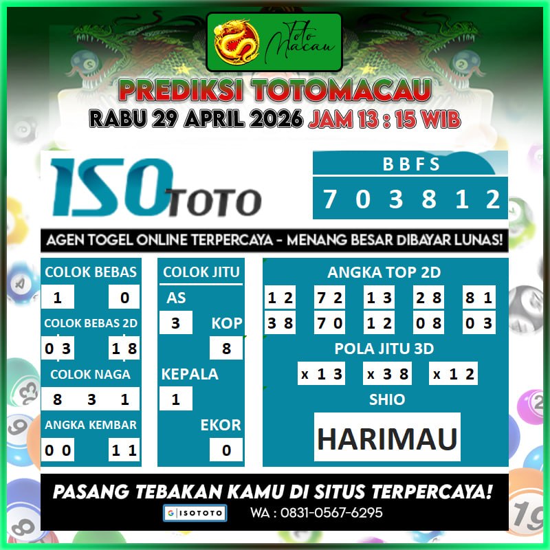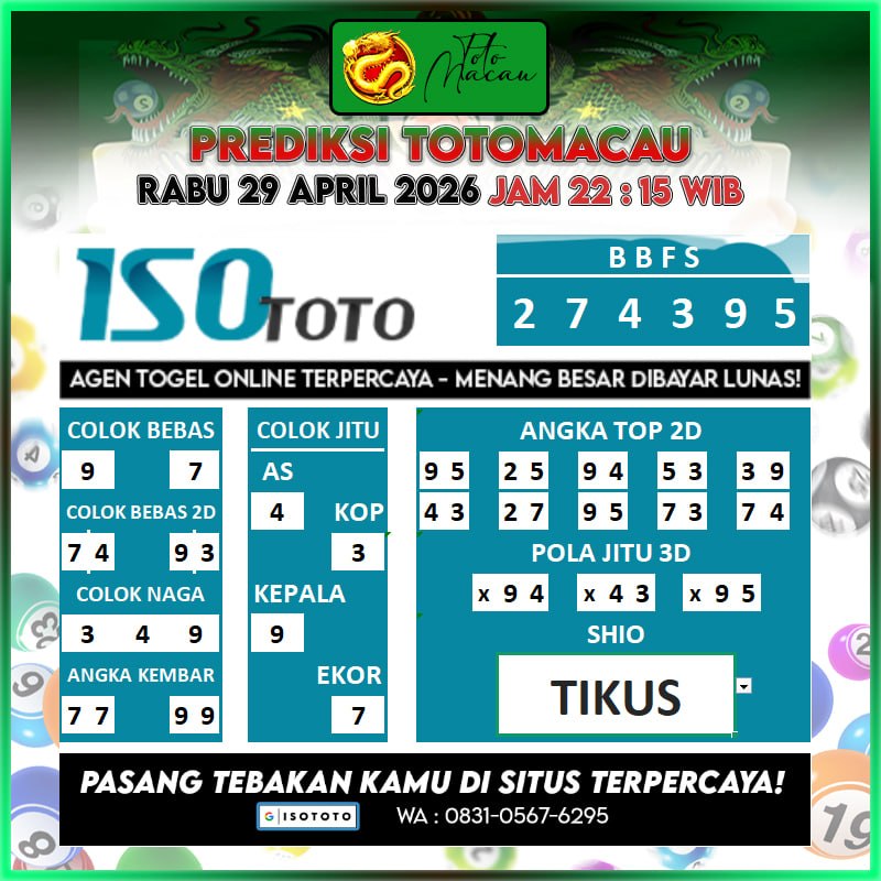 Prediksi Isototo Totomacau Akurat Bisa JP Hari Ini